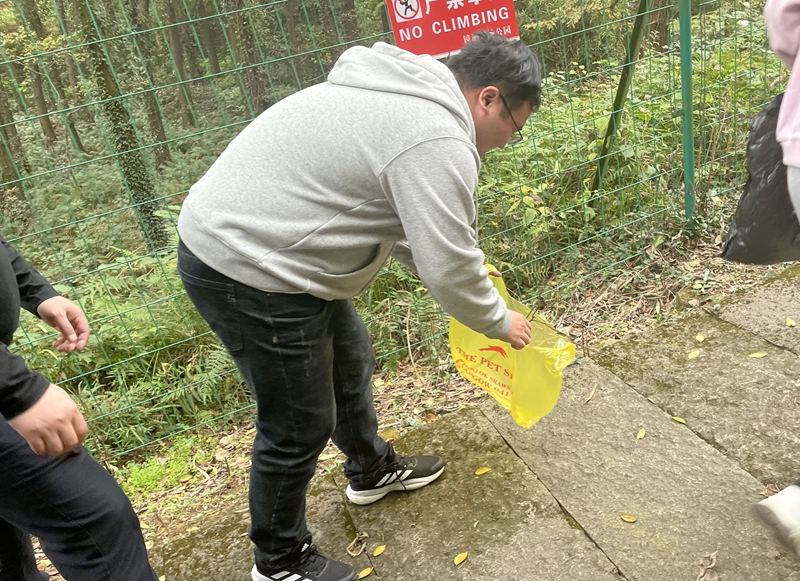 随手清理垃圾和枯枝,并向游客宣传防火安全知识
