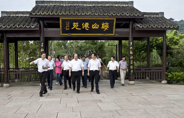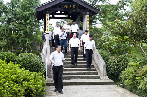 7月10日,绍兴市“晒亮点、比业绩”考评活动进入第三天,市领导彭佳学、俞志宏、谭志桂、陈长兴、尹永杰和其他百余名评委一起,实地踏看越城镜湖新区亮点项目,对镜湖国家城市湿地公园内镜湖开元酒店和镜湖儿童乐园建设情况进行考评。区领导章长胜,宋国兴,张军等陪同考评。