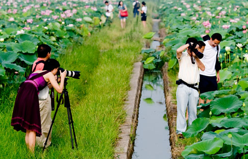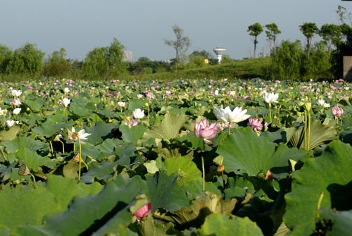 十里荷塘占地面积740亩,因种植了大面积的荷花而得名。品种非常的多,有大红袍、汉宫春、蝶恋花、小公主、白睡莲、红睡莲等等。可分观赏和食用两大类。花期在6月-9月,每日晨开暮闭。果熟期9月-10月。古时江南风俗,阴历六月二十四日为荷花生日,荷花因而又有“六月花神”的雅号。