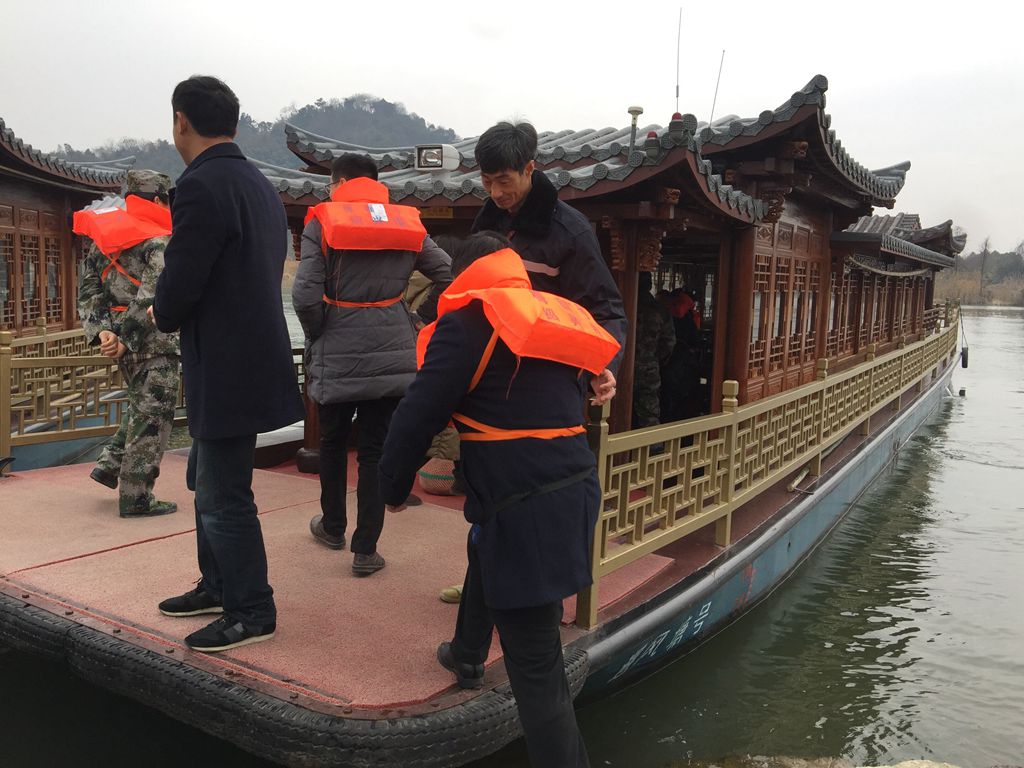 为落实春运期间安全生产责任工作,2月9日上午绍兴镜湖城市湿地公园有限公司在公园游船码头举行机损事故船舱漏水应急演练和山林引水灭火演练。