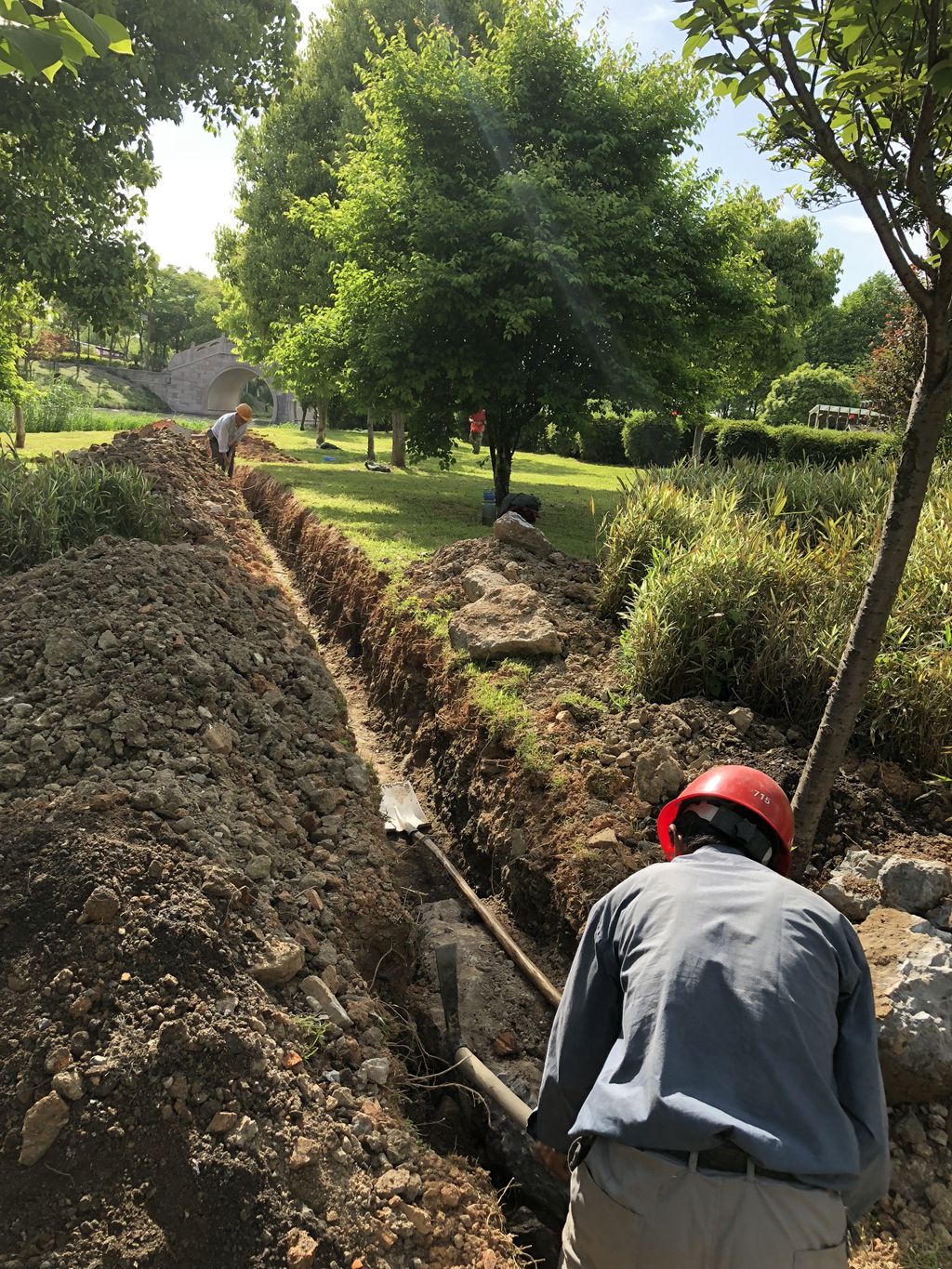 在公园建设方面:一、为更好实现雨污分流,积极推进公园排污纳管建设并将对崖壁广场破损字体进行修复。