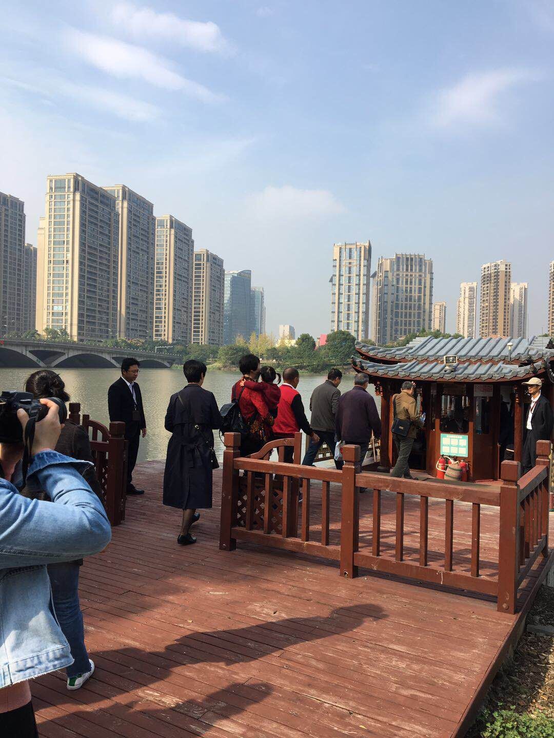 10月17日上午,镜湖湿地公园携手灵芝街道,为40余位老年人提供免费“水上巴士”游览景区。