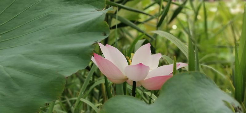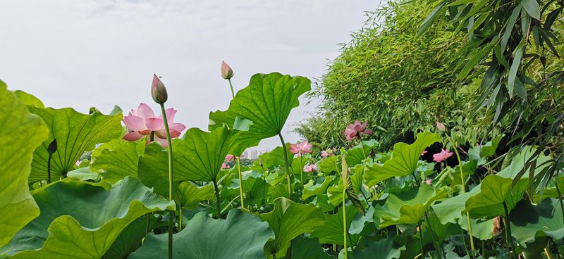 “青荷盖绿水,芙蓉披红鲜。”走在十里荷塘内,满眼碧绿之中,点缀着粉白色的荷花,令人心旷神怡, 仿若置身仙境之中。荷花千姿百态,在绿叶的相称下,仿若纤纤少女,亭亭玉立地随风摇曳着…