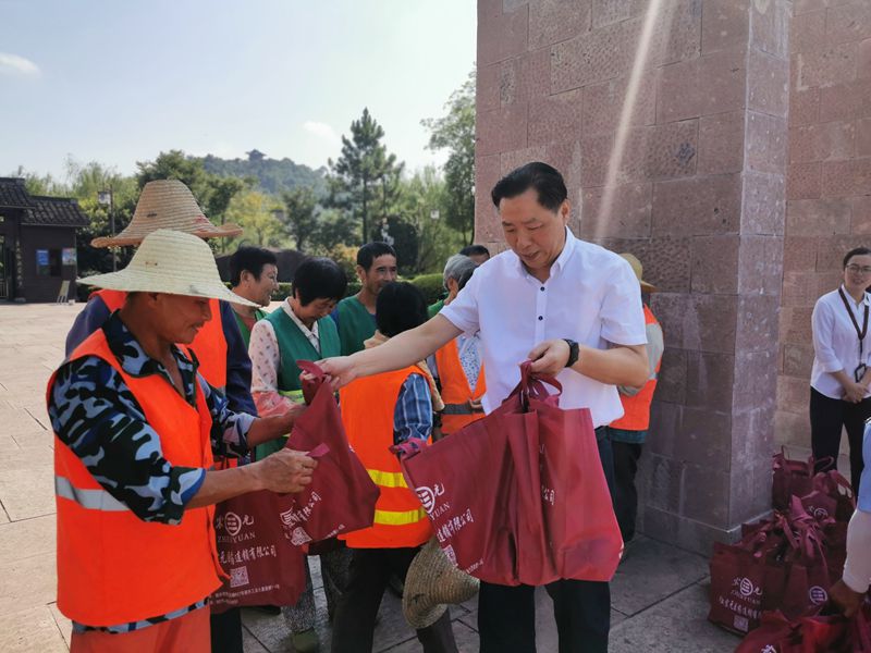 8月7日上午,越城区常委、绍兴市镜湖建设开发办公室党组副书记、副主任宋国兴一行前往绍兴镜湖国家城市湿地公园慰问坚持在岗位的一线员工,为员工们送上一份夏日的清凉。