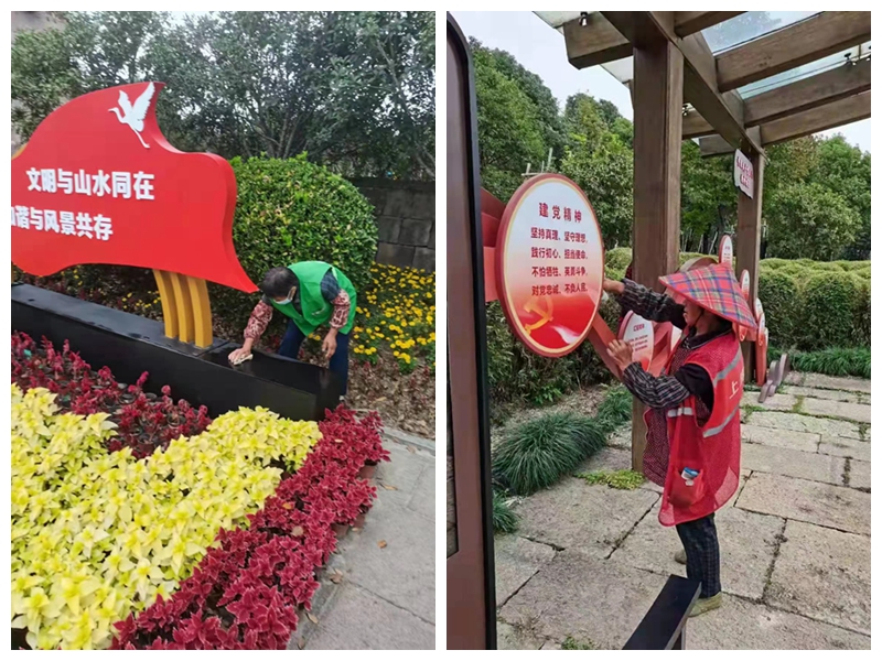对园内的文明宣传标语和文明小品等进行更换、擦拭。