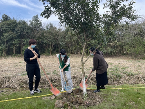 上午9时大家来到湿地公园梅山东麓,准备就绪后植树活动准时开始。大家分工有序,齐心协力共同种下了20株紫薇与桂花树,为春意盎然的湿地公园增添一抹新的绿色。