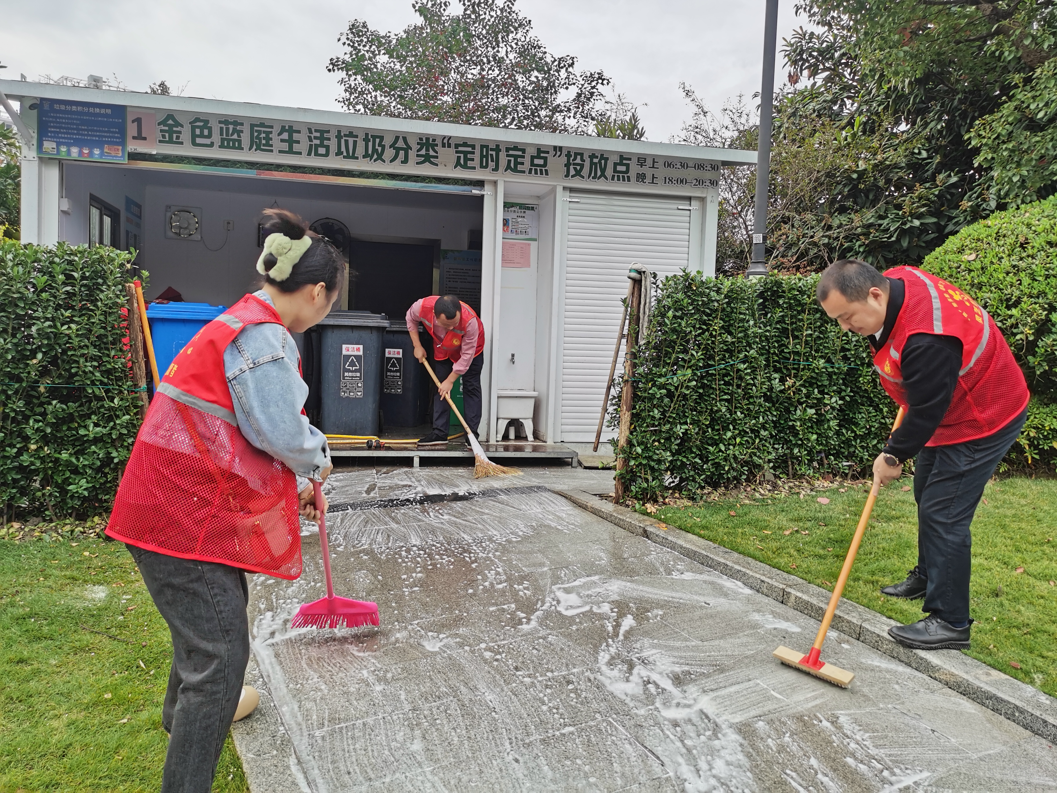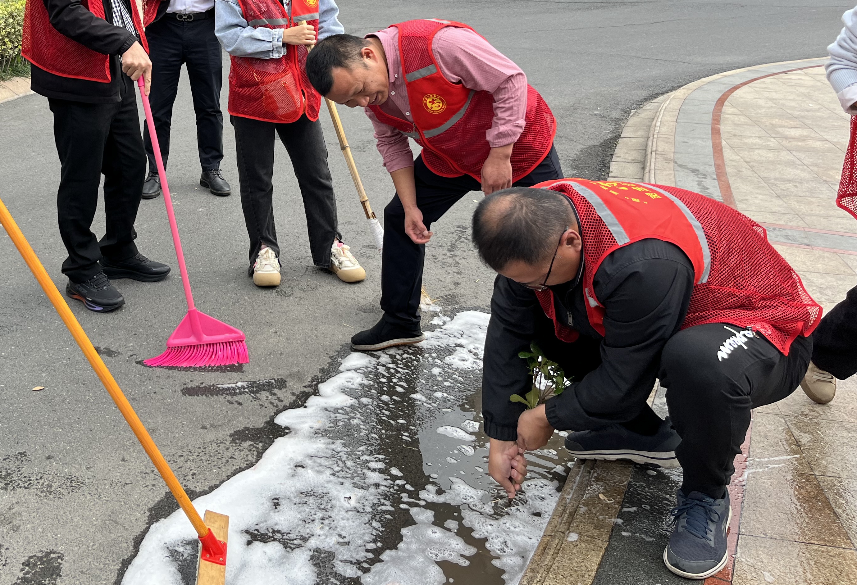 党员们在支部书记的带领下,实地查看并调研了洋江社区生活垃圾分类情况,耐心询问了社区垃圾分类的难点和痛点,并参与了环境整治。