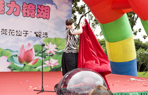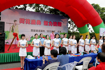 开幕式上,“荷花仙子”旗袍秀、女子秧歌队、儿童拉丁舞、绍兴地方戏曲鹦哥班等精彩节目表演,同时进行“首届镜湖湿地荷花仙子”现场评选活动,把现场气氛引向高潮,掌声、叫好声不绝于耳。