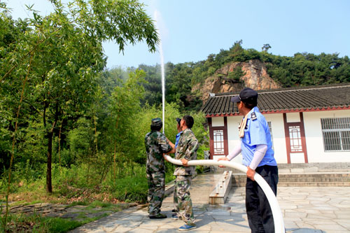 此次演练注重合理设置救援程序和各环节熟练磨合。演练项目以咏梅亭河沿为取水点,经过三百米水带输送,连接高压水泵增压,泵压至60米高朱家潭山顶,出水距离6米以上为合格。